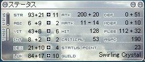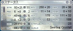 理想としてはDEX20+10、AGI 7+9で達成させ、ステータスpを節約出来たのですが・・・
