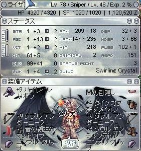 昨日に引き続き、レベルアップ、Lv78/48に。
